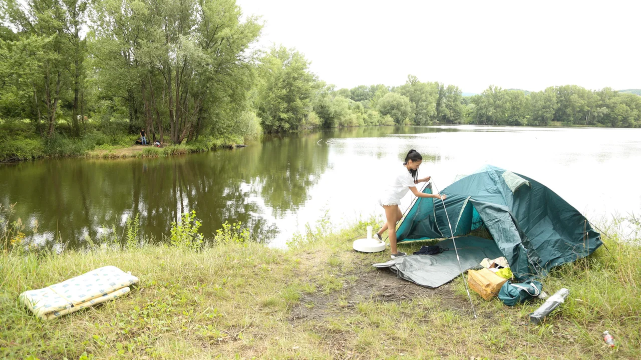 Hot babe is stealing her roommates boyfriend by tugging his dick